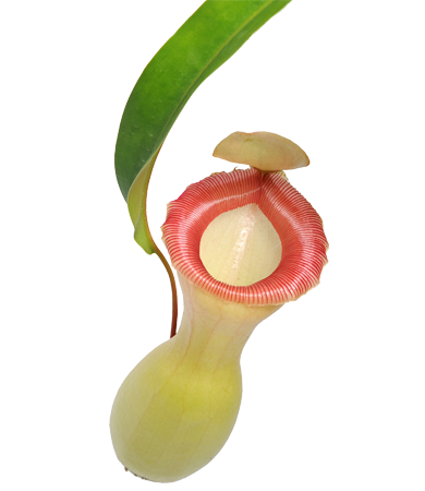 Toutes les espèces de Nepenthes sont carnivores et utilisent des urnes suspendues ou au niveau du sol pour piéger les insectes. Selon l'espèce, ces urnes exotiques peuvent atteindre 35 cm de longueur, variant considérablement en forme, taille et couleur. Chaque urne est remplie de liquide digestif, attirant les proies avec du nectar sucré. Une fois qu'un insecte ou un petit animal tombe à l'intérieur, les parois intérieures lisses empêchent toute fuite, et la proie est progressivement dissoute et absorbée par la plante.