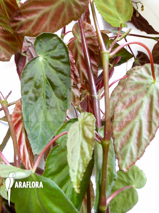 Chez certaines espèces, la couleur des feuilles est si intense qu'elles semblent presque lumineuses. De nombreuses espèces ont en commun un lobe situé derrière l'attache avec la tige de la feuille d'un côté de la feuille, ce qui leur donne une forme asymétrique. Certaines sont légèrement poilues, d'autres un peu plus. Il existe des bégonias qui peuvent atteindre des mètres de haut, mais aussi des espèces qui trouvent leur place dans le plus petit des terrariums. Certains supportent le froid, d'autres ont besoin d'un climat tropical. Bref, en matière de bégonias, il y en a pour tous les goûts.
